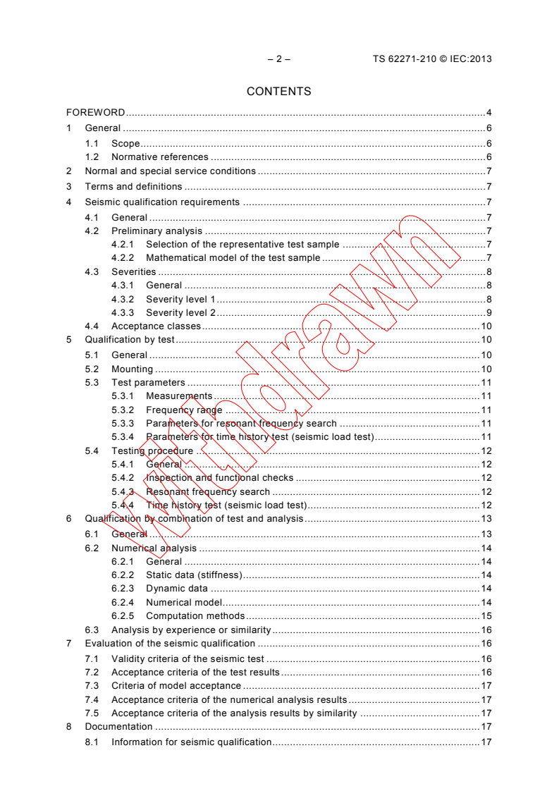 IEC TS 62271-210:2013 is a technical specification published by the International Electrotechnical Commission (IEC). Its full title is "High-voltage switchgear and controlgear - Part 210: Seismic qualification for metal enclosed and solid-insulation enclosed switchgear and controlgear assemblies for rated voltages above 1 kV and up to and including 52 kV". This standard covers: IEC/TS 62271-210:2013 applies to metal enclosed switchgear and controlgear assemblies complying with IEC 62271-200 for metal enclosed and IEC 62271-201 for solid-insulation enclosed, ground or floor mounted, intended to be used under seismic conditions.