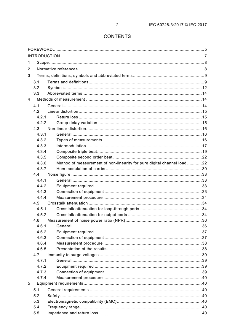 Keywords: IEC 60728-3, active wideband equipment, cable networks, CTB, CSO, CINR, noise figure, return loss, intermodulation, forward path, return path, measurement methods.