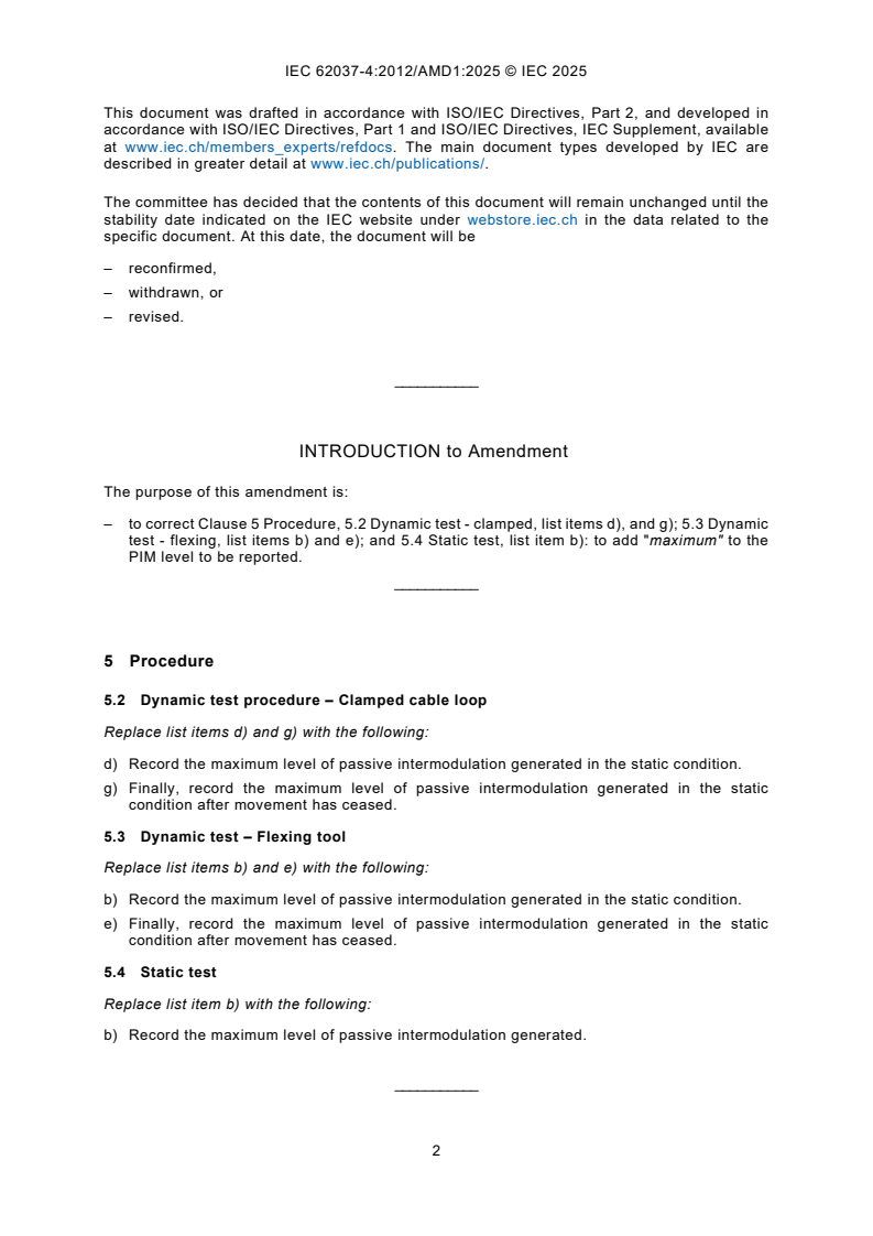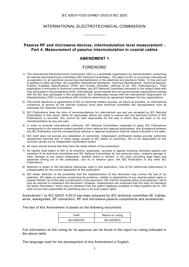 IEC 62037-4:2012/AMD1:2025 - Amendment 1 - Passive RF and microwave devices, intermodulation level measurement - Part 4: Measurement of passive intermodulation in coaxial cables Released:2. 12. 2025 Isbn:9782832708699