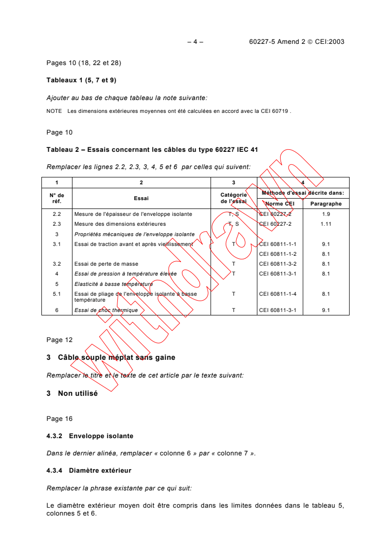 Dans la ligne 2.1, remplacer « CEI 60227-4 » par « CEI 60227-5 ».