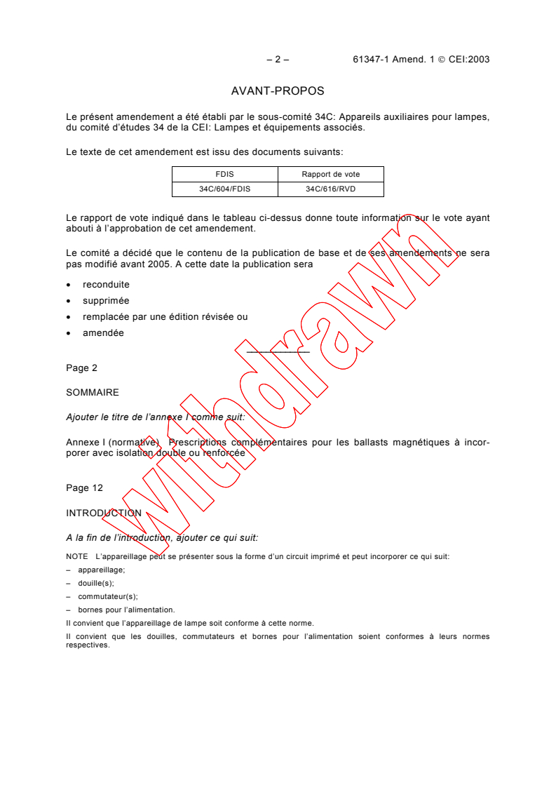 Le présent amendement a été établi par le sous-comité 34C: Appareils auxiliaires pour lampes,