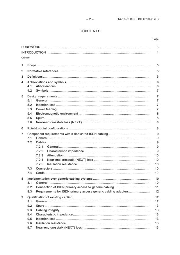 Keywords: ISO/IEC 14709-2:1998, Customer Premises Cabling, CPC, ISDN primary rate, ISDN primary access, insertion loss, NEXT, characteristic impedance, generic cabling, ISO/IEC 11801, ITU‑T I.431.
