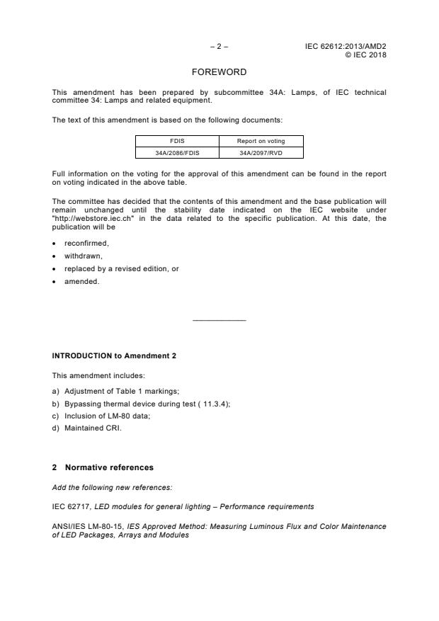 Amendment 2 - Self-ballasted LED lamps for general lighting services with supply voltages > 50 V - Performance requirements