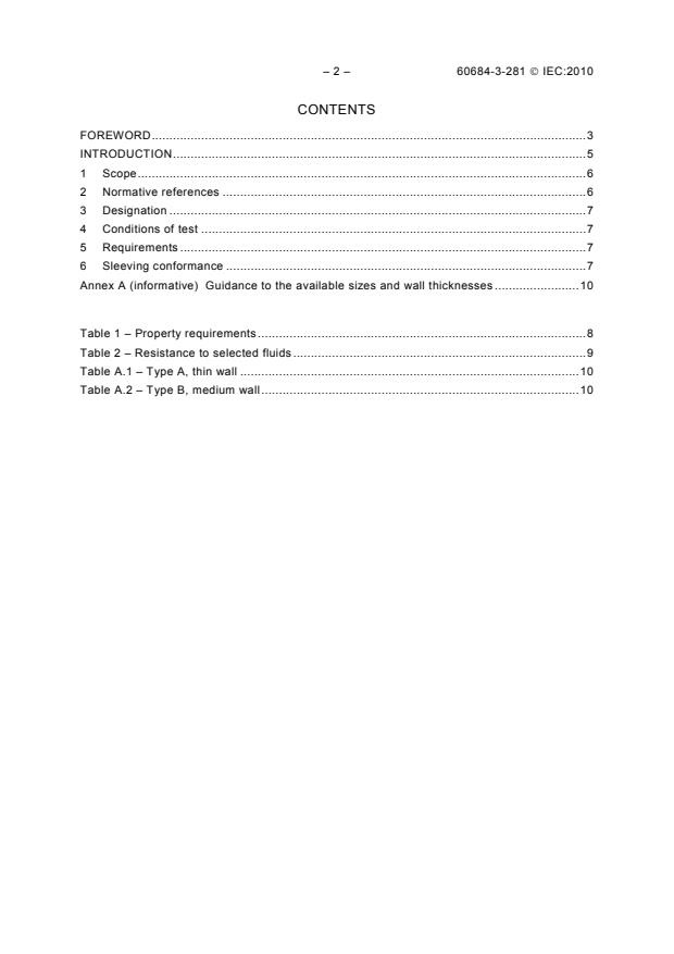 IEC 60684-3-281:2010 gives the requirements for two types of heat-shrinkable, polyolefin sleeving, semiconductive, with a nominal shrink ratio of 3:1. This sleeving has been found suitable up to temperatures of 100 °C. - Type A: Thin wall - Internal diameter up to 195,0 mm typically; - Type B: Medium wall - Internal diameter up to 120,0 mm typically