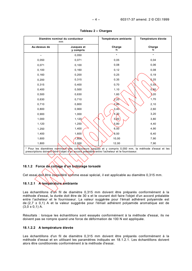 Amendement 2 - Spécifications pour types particuliers de fils de bobinage - Partie 37: Fil de section circulaire en cuivre émaillé avec polyesterimide, classe 180, avec une couche adhérente