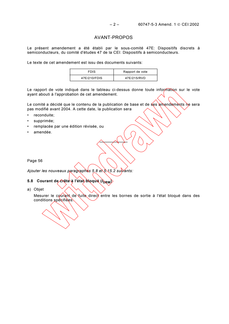 This amendment has been prepared by subcommittee 47E: Discrete semiconductor devices,
