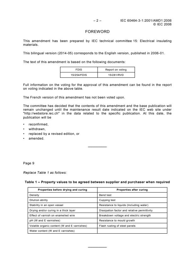 – 2 – 60464-3-1 Amend. 1 IEC:2006(E)