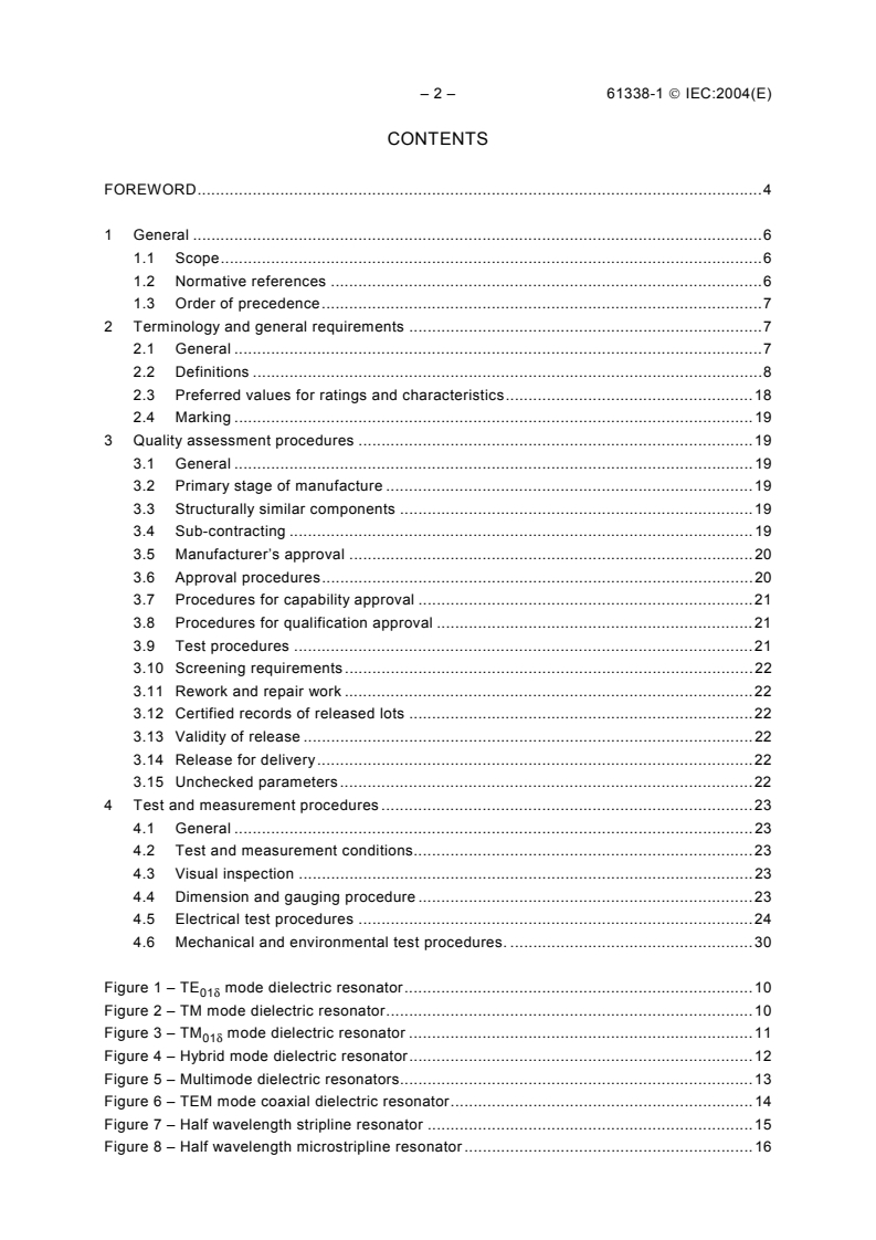 Keywords: IEC 61338-1:2004, waveguide type dielectric resonators, dielectric resonators, test and measurement procedures, qualification approval, capability approval, relative permittivity, loss factor, microwave components.