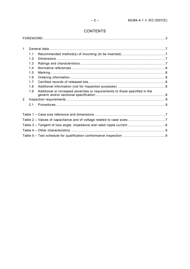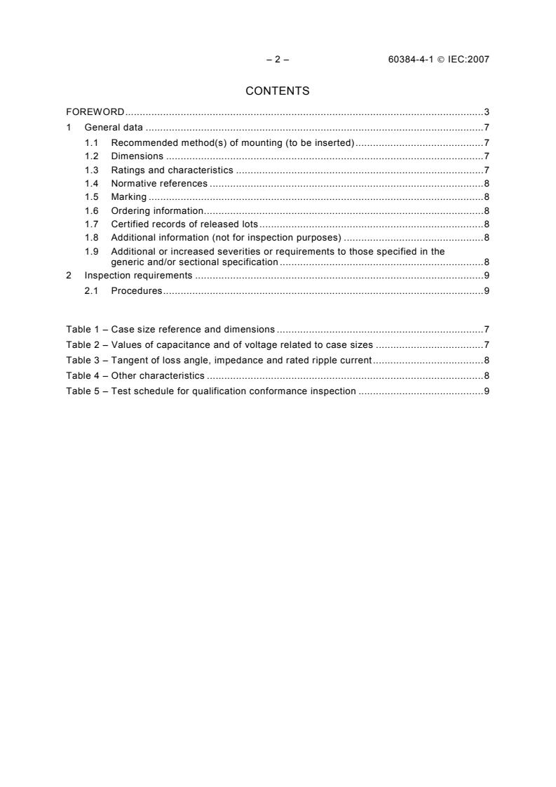 IEC 60384-4-1:2007 is a blank detail specification published by the International Electrotechnical Commission (IEC) for fixed aluminium electrolytic capacitors with non-solid electrolyte (assessment level EZ). This document is a supplementary template to the sectional specification (IEC 60384-4) and defines the required style, layout and minimum content of individual detail specifications. Detail specifications that do not follow this blank template are not to be described as being in accordance with IEC specifications. The 2007 third edition contains minor revisions to tables, figures and references and corresponds to the English version (bilingual published 2008).