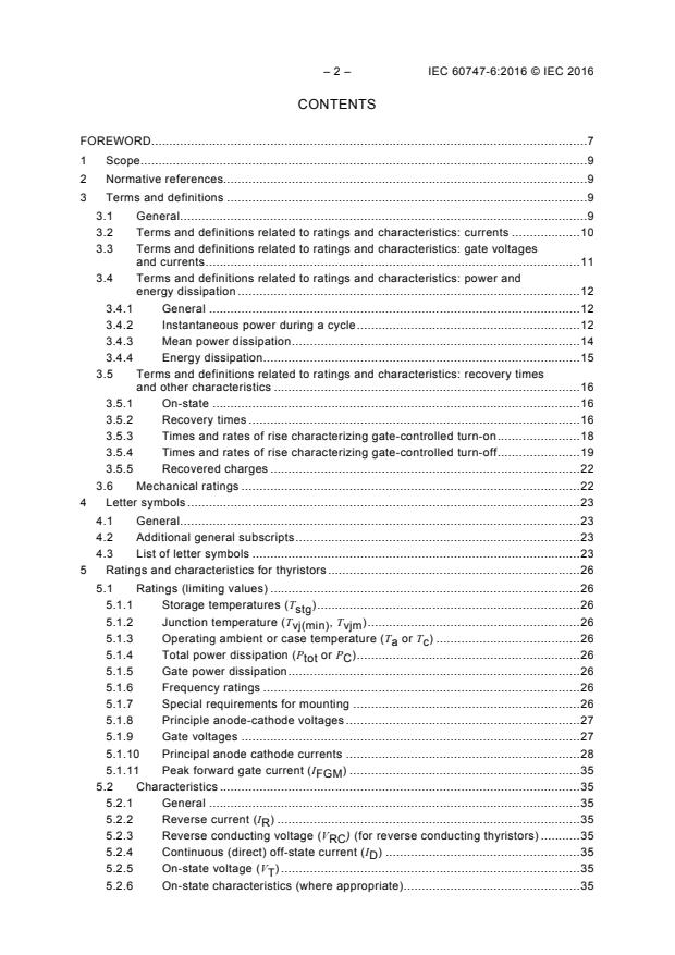 IEC 60747-6:2016 covers a comprehensive set of technical subjects related to thyristors, including: