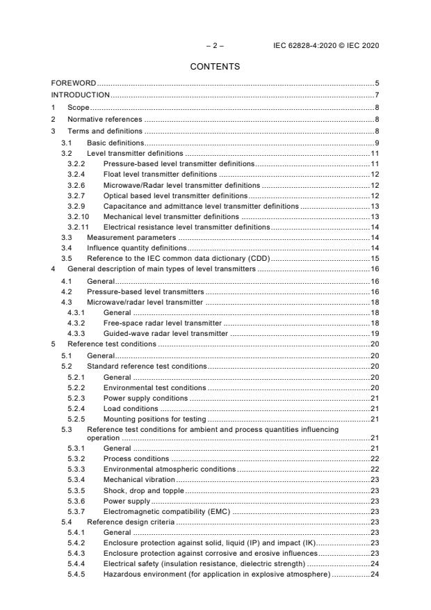 IEC 62828-4:2020 is a standard published by the International Electrotechnical Commission (IEC). Its full title is "Reference conditions and procedures for testing industrial and process measurement transmitters - Part 4: Specific procedures for level transmitters". This standard covers: IEC 62828-4:2020 establishes specific procedures for testing level transmitters used in measuring and control systems for industrial process and machinery control systems. For general test procedures, reference is to be made to IEC 62828-1:2017, applicable to all types of transmitters. Throughout this document, the term "industrial transmitters" covers all types of transmitters used in measuring and control systems for industrial processes and for machinery. The requirements of this document are applicable to all level measurement principles. Detailed description of transmitters is given for two main principles for improved clarity.