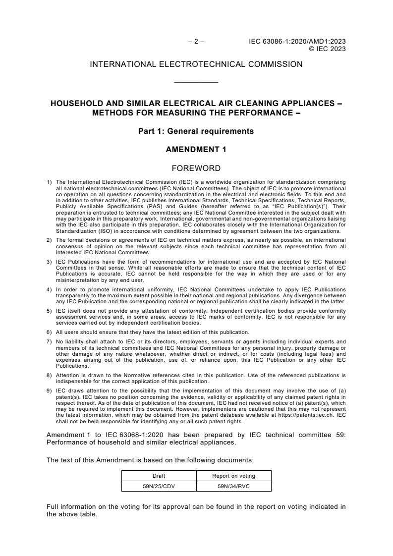 IEC 63086-1:2020/AMD1:2023 - Amendment 1 - Household and similar electrical air cleaning appliances - Methods for measuring the performance - Part 1: General requirements Released:7/21/2023 Isbn:9782832272565