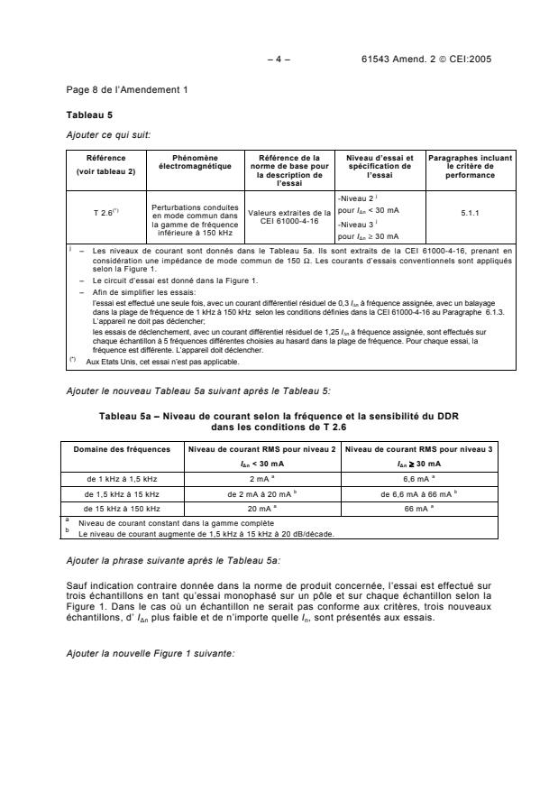 – Les niveaux de courant sont donnés dans le Tableau 5a. Ils sont extraits de la CEI 61000-4-16, prenant en