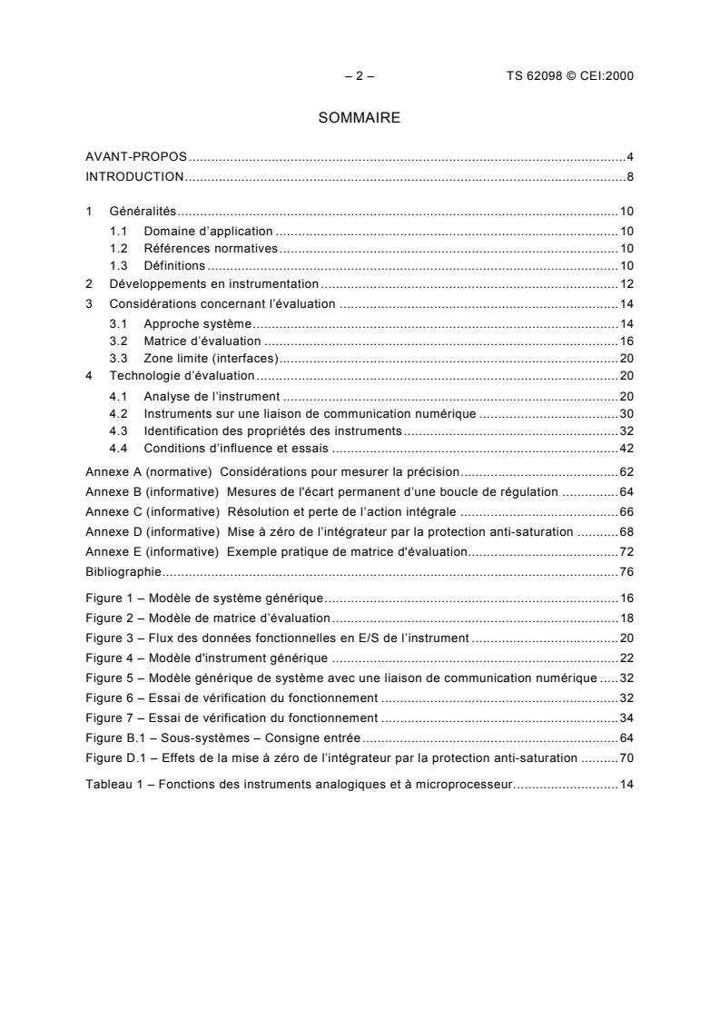IEC TS 62098:2000 is a technical specification published by the International Electrotechnical Commission (IEC). Its full title is "Evaluation methods for microprocessor- based instruments". This standard covers: This Technical Specification aims at providing background information for developing evaluation methods for microprocessor-based instruments. An evaluation starts with analysis of the instrument in terms of the external and internal information flows from and to the process, the human operator and external systems. Main function blocks in the instrument are then identified. By using the checklists given in 4.2 and 4.3, the functions and properties that may be embedded in the function blocks of the instrument to be evaluated can be identified.