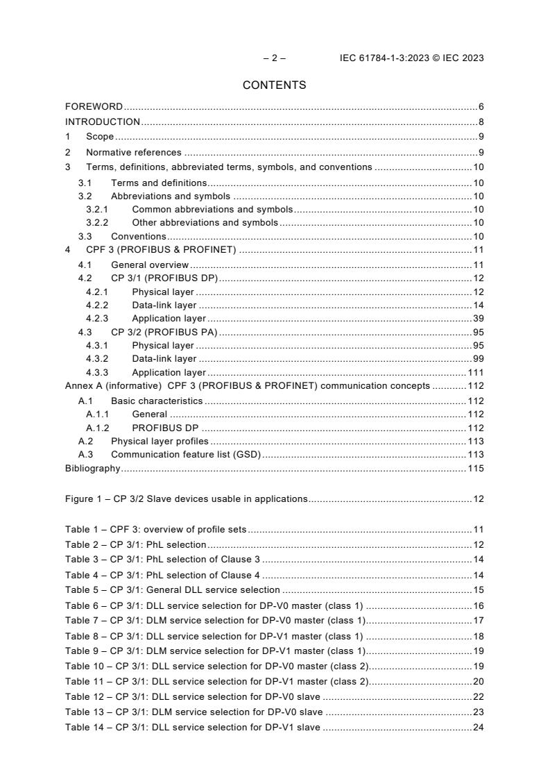 IEC 61784-1-3:2023 defines Communication Profile Family 3 (CPF 3). CPF 3 specifies a set of protocol specific communication profiles (CPs) based on the IEC 61158 series (Type 3 and Type 10) and other standards, to be used in the design of devices involved in communications in factory manufacturing and process control. NOTE 1 All CPs are based on standards or draft standards or International Standards published by the IEC or on standards or International Standards established by other standards bodies or open standards processes. NOTE 2 Some CPs of CPF 3 are specified in IEC 61784-2-3. Each CP selects an appropriate consistent and compatible subset of services and protocols from the relevant set that is defined and modelled in the IEC 61158 series. For the selected subset of services and protocols, the profile also describes any possible or necessary constraints in parameter values.