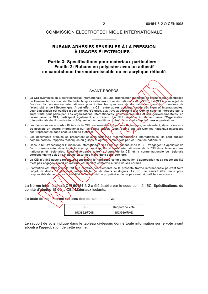 IEC 60454-3-2:1998 - Pressure-sensitive adhesive tapes for electrical purposes - Part 3: Specifications for individual materials - Sheet 2: Polyester film tapes with rubber thermosetting or acrylic crosslinked adhesives Released:2/26/1998 Isbn:2831842875