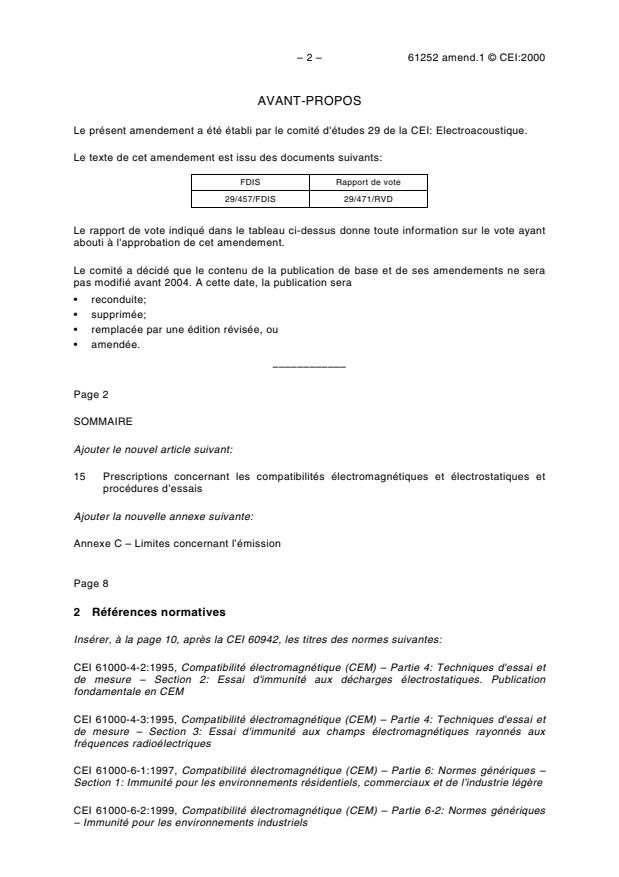 Le présent amendement a été établi par le comité d'études 29 de la CEI: Electroacoustique.