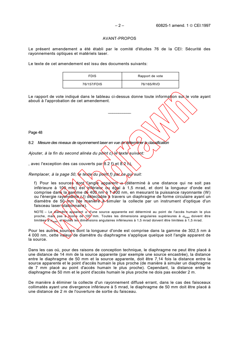 Keywords: IEC 60825-1 amendment, laser product safety, laser equipment classification, laser radiation measurement, maximum permissible exposure (MPE), laser safety guidelines, optical radiation safety, laser user guide, laser hazard assessment, laser aperture measurement, laser safety standard updates.
