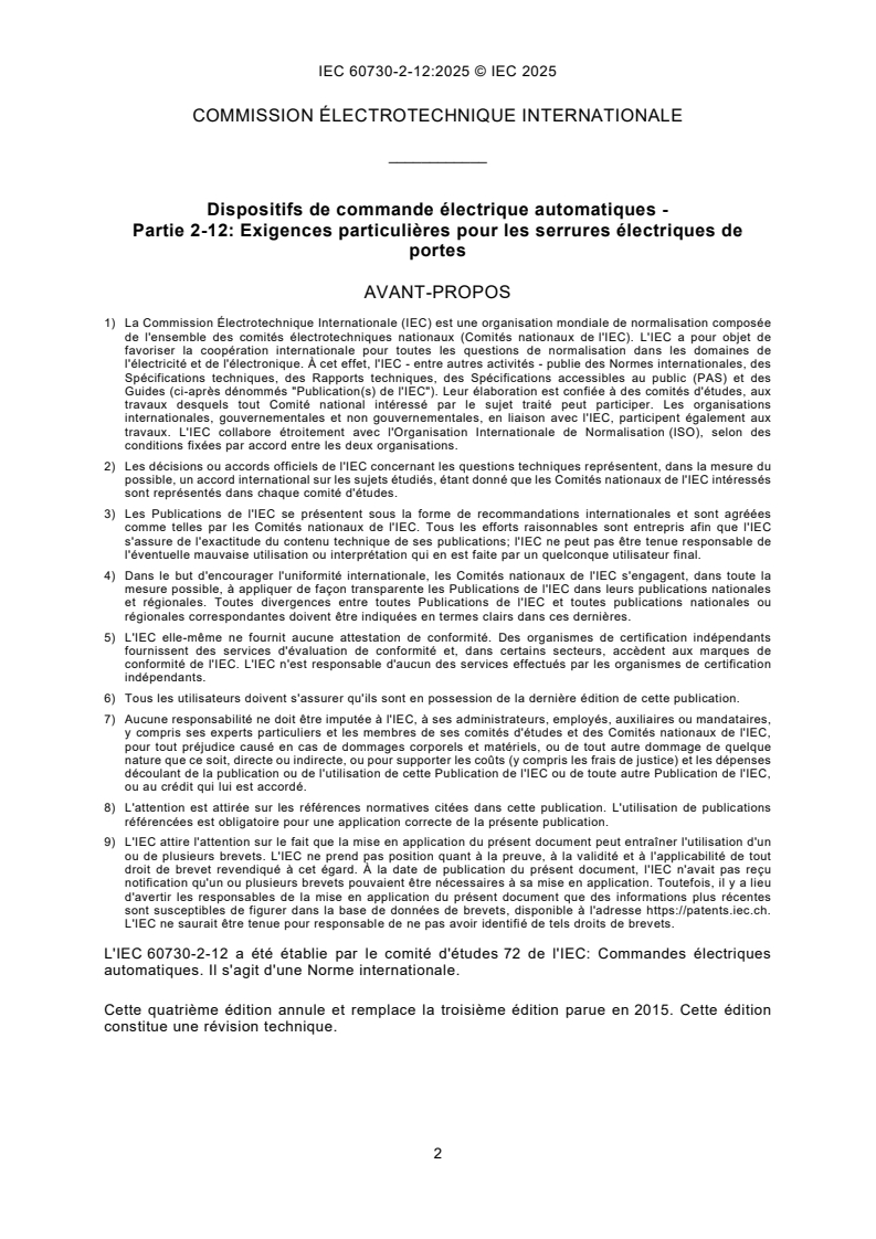 IEC 60730-2-12:2025 - Dispositifs de commande électrique automatiques - Partie 2-12 : Exigences particulières pour les serrures électriques de portes Released:15. 12. 2025 Isbn:9782832705919
