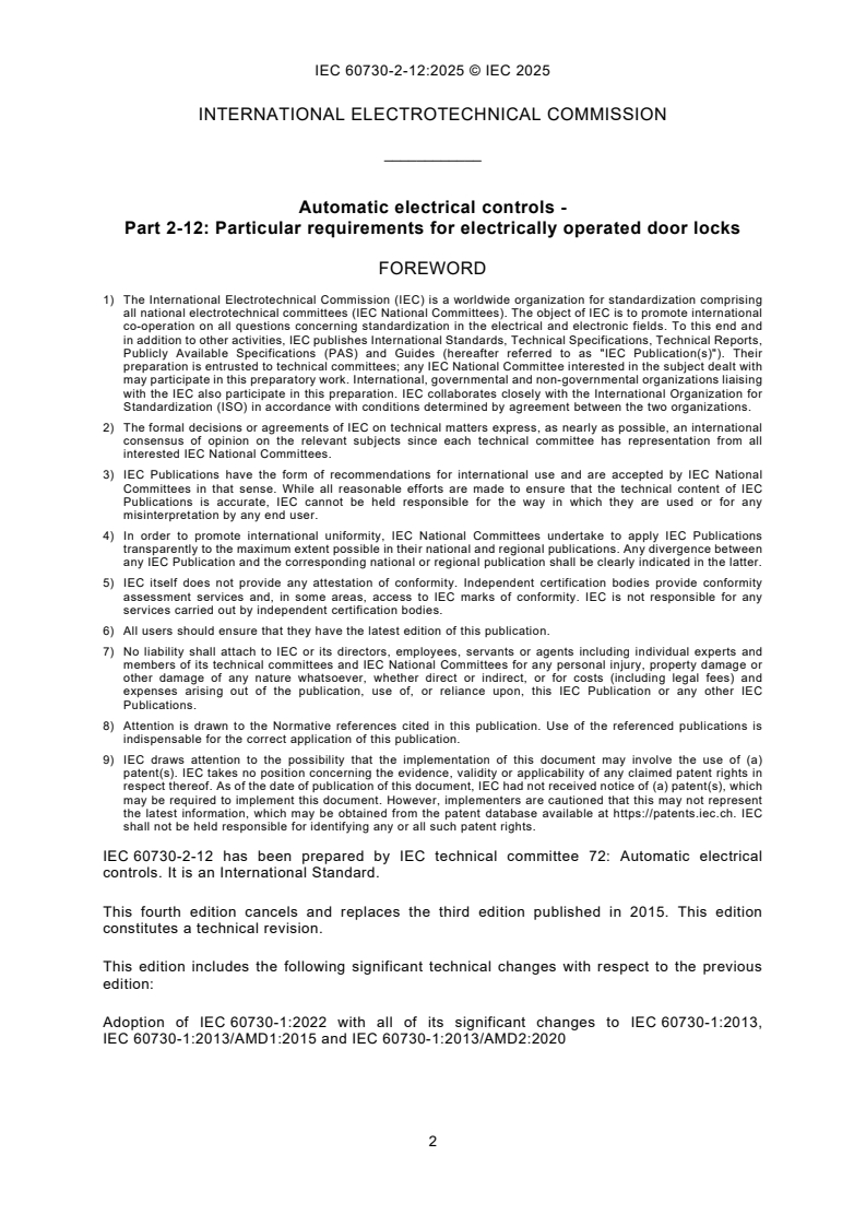 IEC 60730-2-12:2025 - Automatic electrical controls - Part 2-12: Particular requirements for electrically operated door locks Released:15. 12. 2025 Isbn:9782832705919