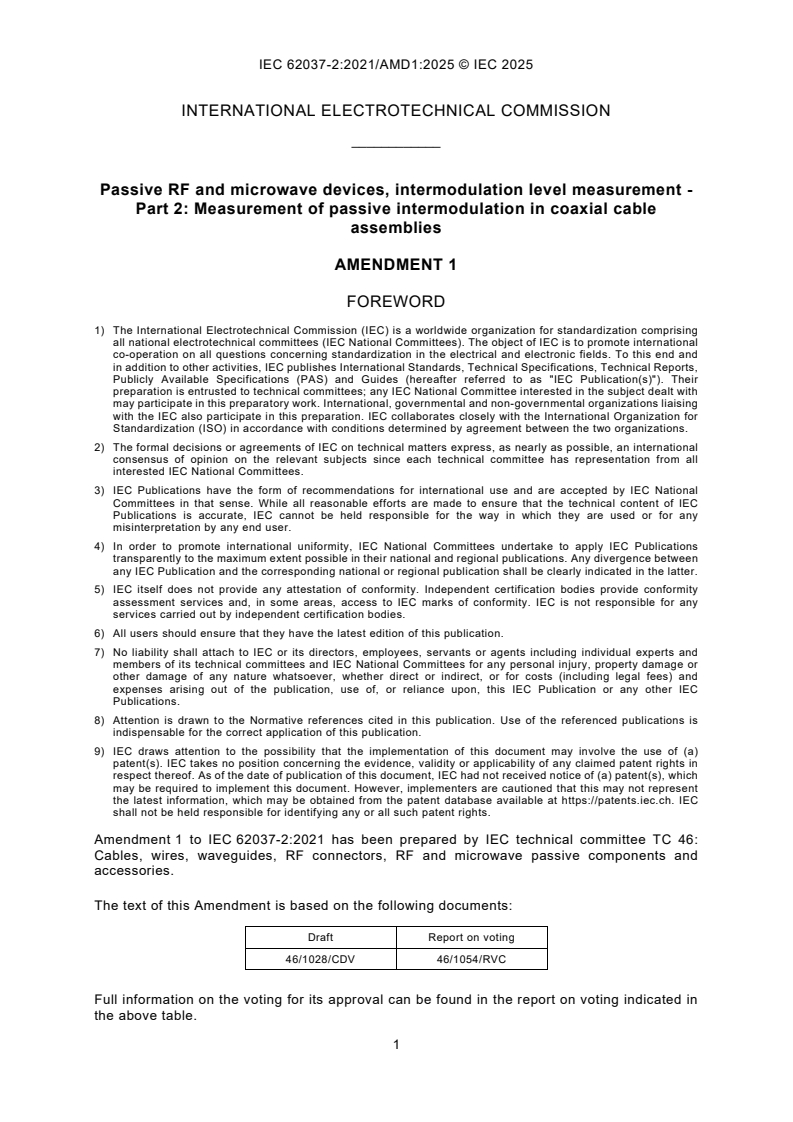 IEC 62037-2:2021/AMD1:2025 - Amendment 1 - Passive RF and microwave devices, intermodulation level measurement - Part 2: Measurement of passive intermodulation in coaxial cable assemblies Released:2. 12. 2025 Isbn:9782832708682