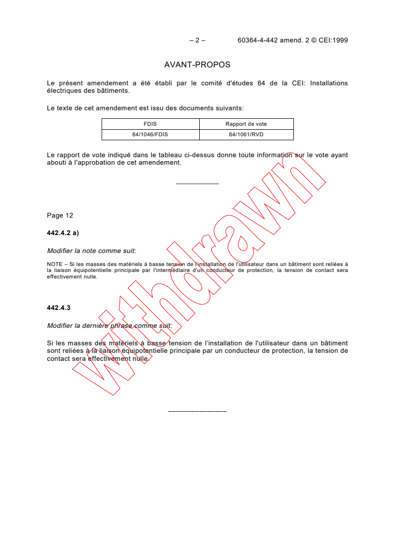– 2 – 60364-4-442 amend. 2 © CEI:1999