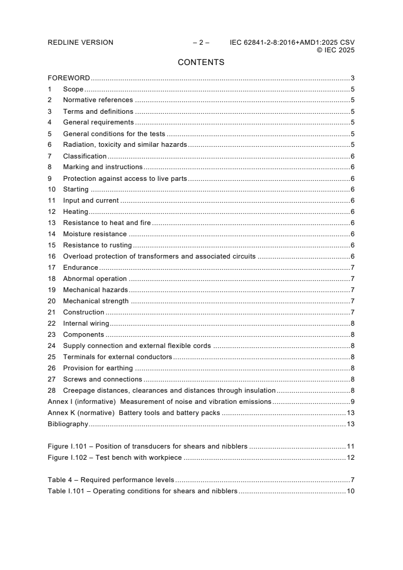 IEC 62841-2-8:2016+AMD1:2025 CSV - Electric motor-operated hand-held tools, transportable tools and lawn and garden machinery - Safety - Part 2-8: Particular requirements for hand-held shears and nibblers Released:17. 02. 2025 Isbn:9782832702482
