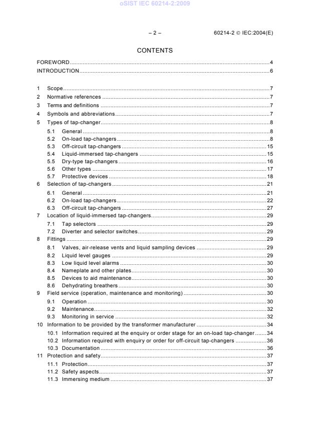 1 Scope.7 2 Normative references.7 3 Terms and definitions.7 4 Symbols and abbreviations.7 5 Types of tap-changer.8 5.1 General.8 5.2 On-load tap-changers.8 5.3 Off-circuit tap-changers.15 5.4 Liquid-immersed tap-changers.15 5.5 Dry-type tap-changers.16 5.6 Other types.17 5.7 Protective devices.18 6 Selection of tap-changers.21 6.1 General.21 6.2 On-load tap-changers.22 6.3 Off-circuit tap-changers.27 7 Location of liquid-immersed tap-changers.29 7.1 Tap selectors.29 7.2 Diverter and selector switches.29 8 Fittings.29 8.1 Valves, air-release vents and liquid sampling devices.29 8.2 Liquid level gauges.29 8.3 Low liquid level alarms.30 8.4 Nameplate and other plates.30 8.5 Devices to aid maintenance.30 8.6 Dehydrating breathers.30 9 Field service (operation, maintenance and monitoring).30 9.1 Operation.30 9.2 Maintenance.32 9.3 Monitoring in service.32 10 Information to be provided by the transformer manufacturer.34 10.1 Information required at the enquiry or order stage for an on-load tap-changer.34 10.2 Information required with enquiry or order for off-circuit tap-changers.36 10.3 Documentation.36 11 Protection and safety.37 11.1 Protection.37 11.2 Safety aspects.37 11.3 Immersing medium.37