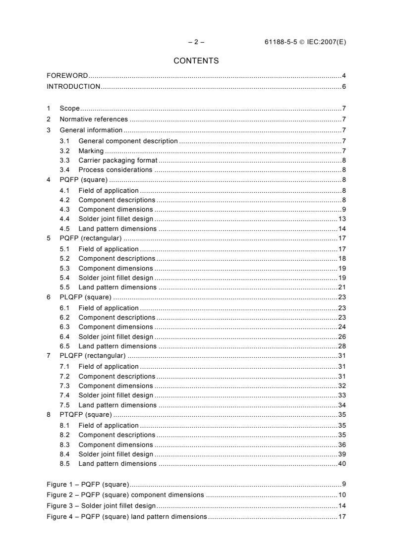 Keywords: IEC 61188-5-5, land pattern, gull-wing leads, PQFP, surface mount, solder fillet, PCB design, printed boards, reflow soldering, land/joint considerations.