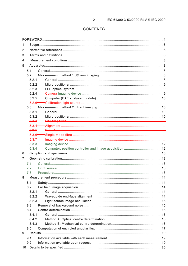 IEC 61300-3-53:2020 specifies a standardized method for measuring Encircled Angular Flux (EAF) of step-index multimode waveguides (including optical fibres) using two‑dimensional far‑field data. The standard applies to multimode waveguides where most transverse modes are excited and covers channel waveguides and fibres (but not slab waveguides). This second edition (2020) replaces the 2015 edition, adds graded‑index multimode waveguides to the scope, reorganizes measurement method content, and includes new Annexes C and D; the June 2023 corrigendum is incorporated.