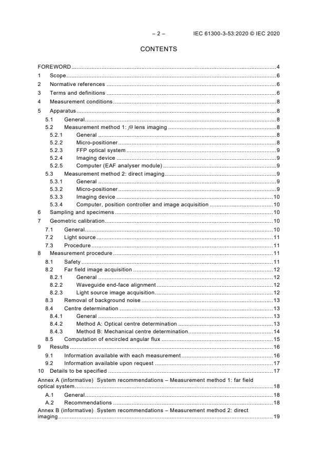 IEC 61300-3-53:2020 defines the encircled angular flux measurement of multimode waveguide light sources, in which most of the transverse modes are excited. The term "waveguide" is understood to include both channel waveguides and optical fibres but not slab waveguides. The applicable fibre types are the followings: - A1 specified in IEC 60793-2-10; - A3 specified in IEC 60793-2-30; - A4 specified in IEC 60793-2-40. This second edition cancels and replaces the first edition in 2015. This edition constitutes a technical revision. This edition includes the following significant technical changes with respect to the previous edition: - the scope of the applicable wave guides, and graded index multimode optical wave guide and fibre have been included; - the structure of 5.3 has been rearranged; - Annex C and Annex D have been added. The contents of the corrigendum of June 2023 have been included in this copy.