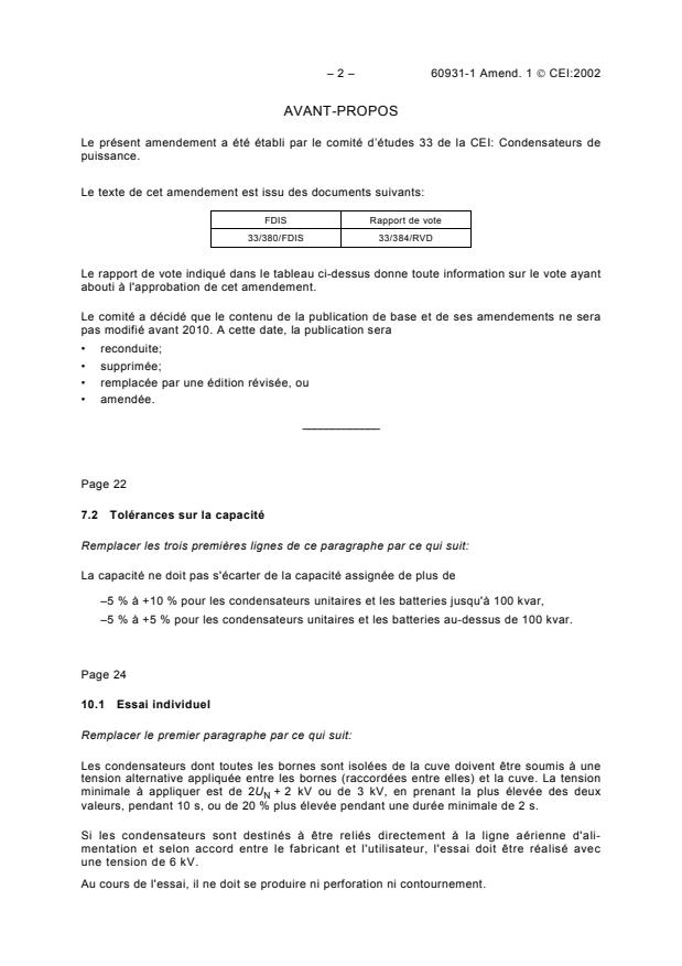 Le présent amendement a été établi par le comité d’études 33 de la CEI: Condensateurs de