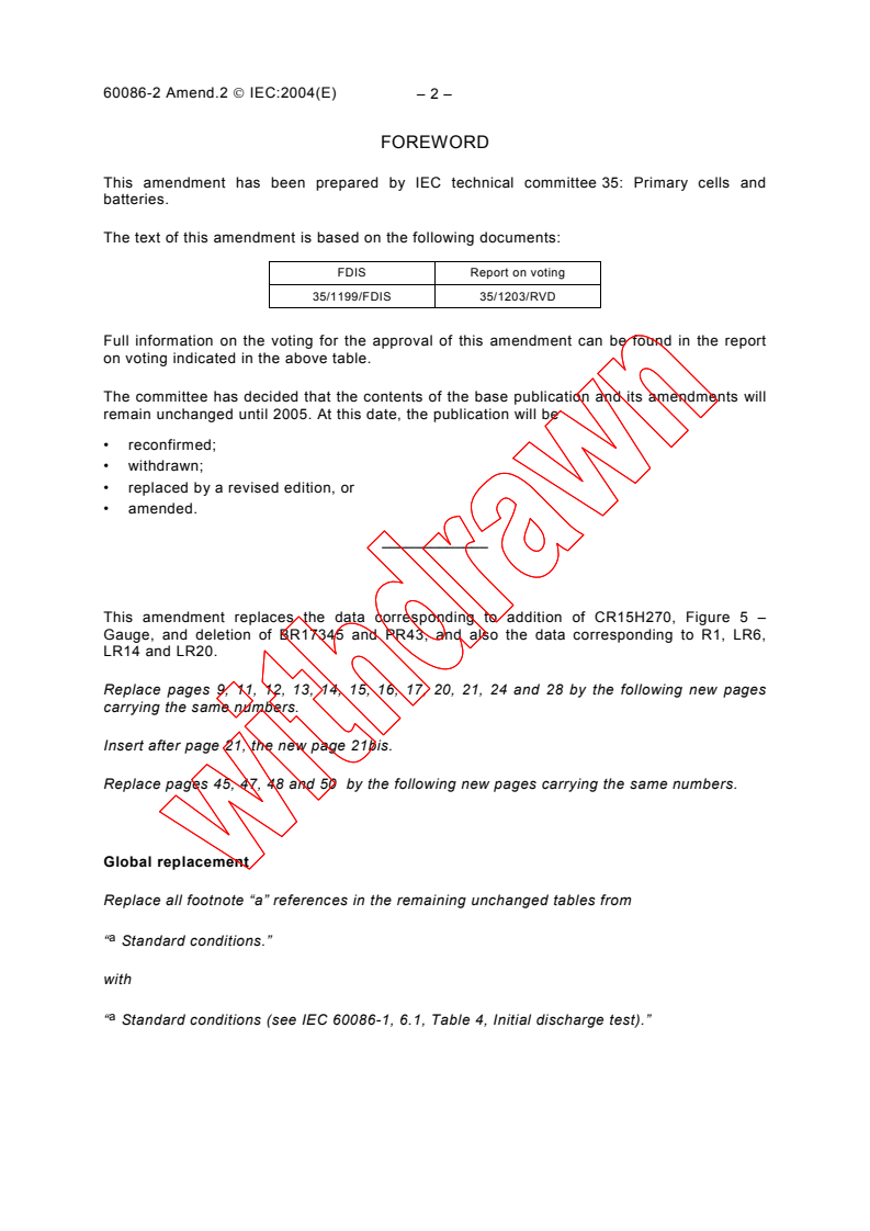 Amendment 2 - Primary batteries - Part 2: Physical and electrical specifications
