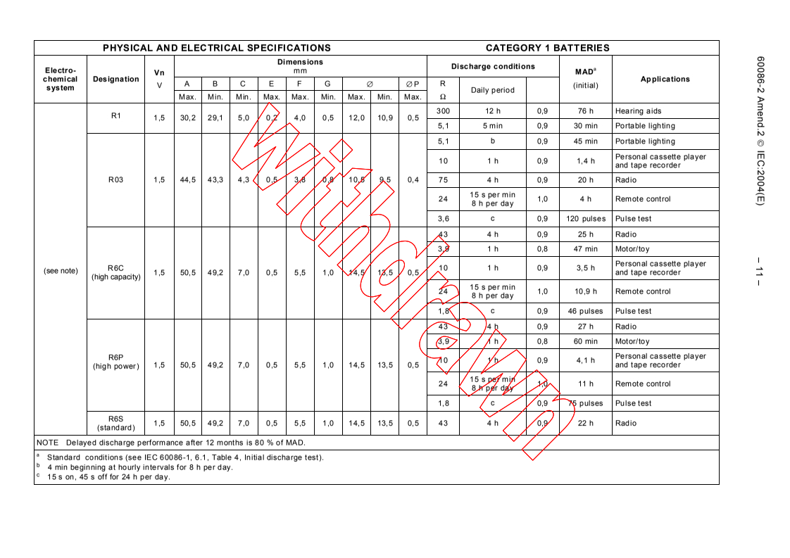 (Amendment)Amendment 2 - Primary batteries - Part 2: Physical and electrical specifications