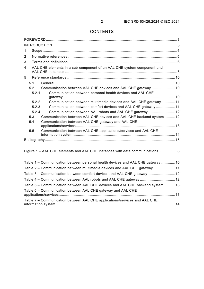 Keywords: IEC SRD 63426:2024, AAL, connected home, CHE, interoperability, connectivity, reference standards portfolio, AAL devices, gateways, healthcare IoT.