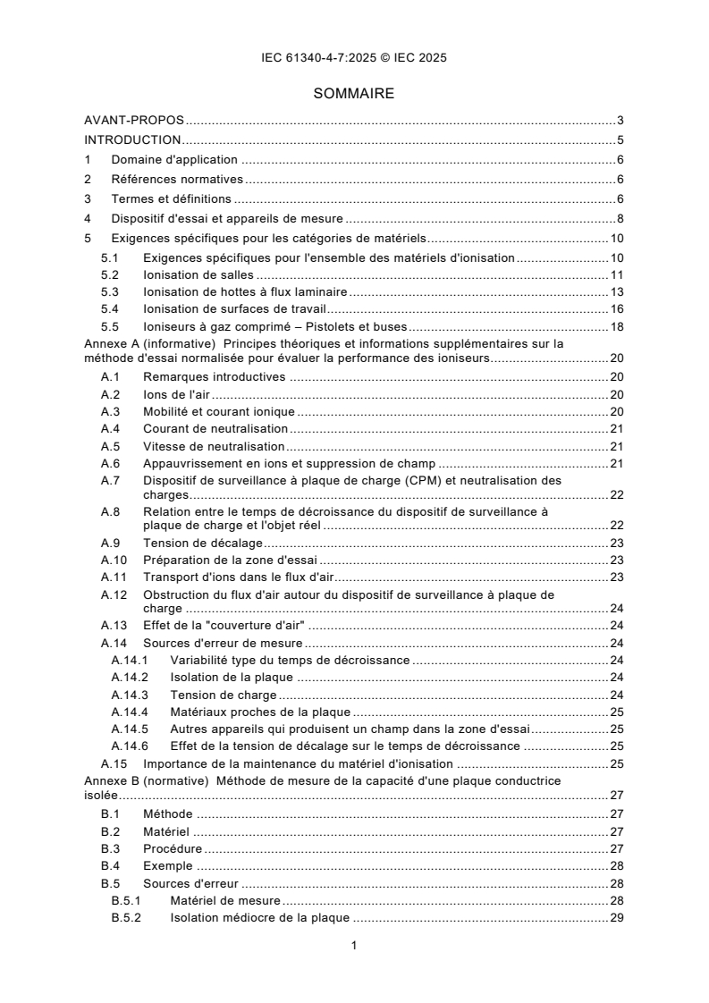 IEC 61340-4-7:2025 - Electrostatique - Partie 4-7 : Méthodes d'essai normalisées pour des applications spécifiques - Ionisation Released:8/19/2025 Isbn:9782832706435