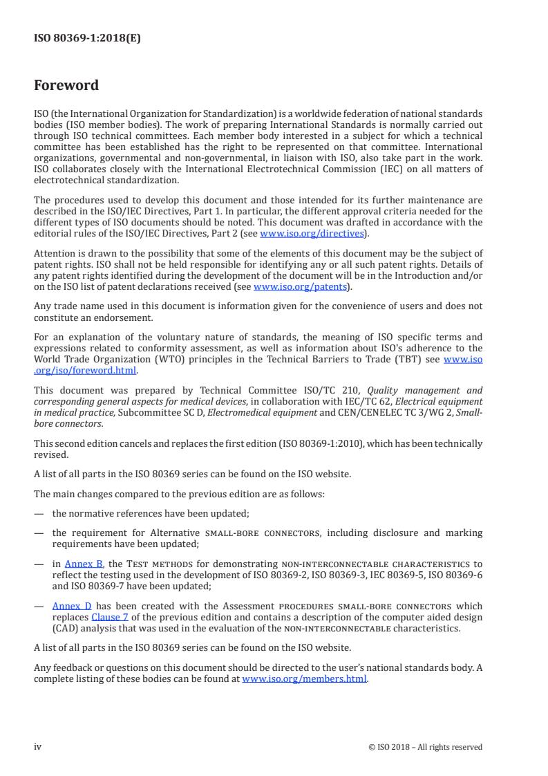 NOTE 4 Les fabricants et les organismes responsables sont incités à faire part de leur expérience concernant les raccords de petite taille spécifiés dans la série ISO 80369 au Secrétariat de l'ISO/TC 210, de sorte que leurs commentaires puissent être pris en compte lors de la révision de la partie appropriée de la série ISO 80369.