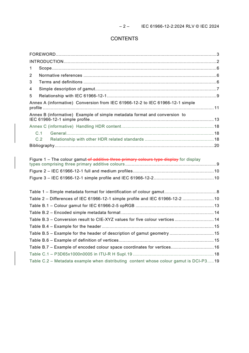 REDLINE IEC 61966-12-2:2024 RLV - Multimedia systems and equipment - Colour measurement and management - Part 12-2: Simple metadata format for identification of colour gamut Released:10/22/2024 Isbn:9782832299616