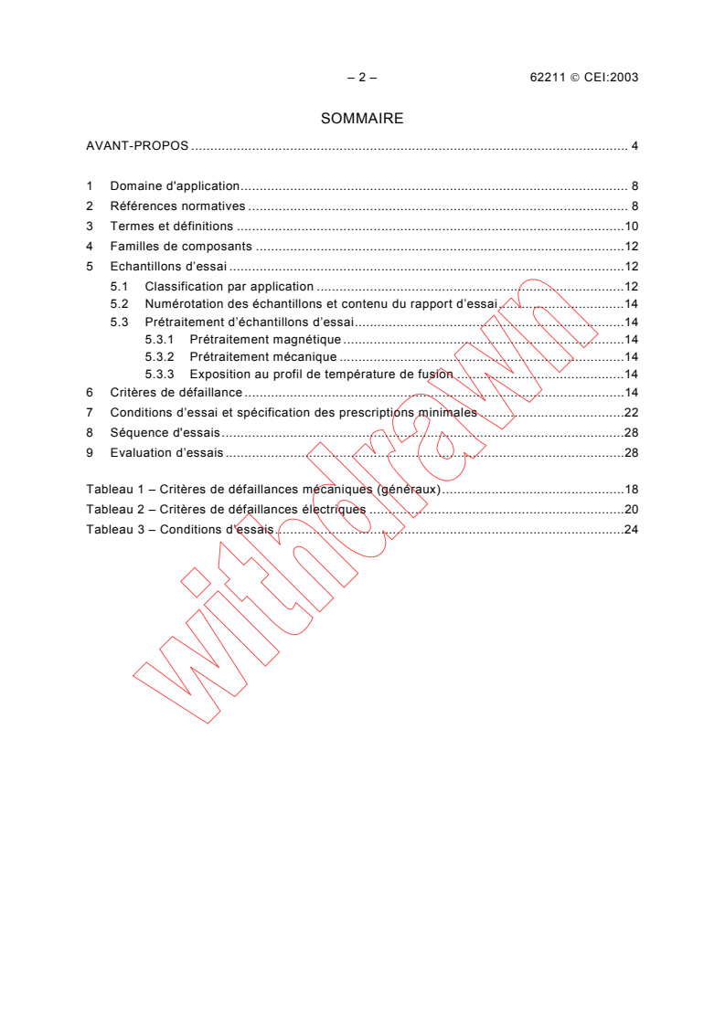 Etablit une large base de critères électriques et mécaniques de procédures d'essais de défaillance. Est applicable aux composants inductifs (inductances de lissage et transformateurs) utilisant des matériaux magnétiques doux. Couvre également les composants à connexions et les différents types de composants inductifs à montage en surface (CMS).