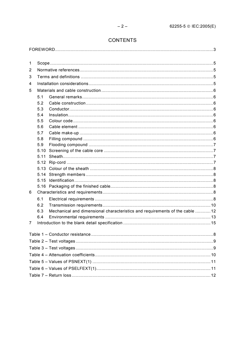 Keywords: IEC 62255-5, filled drop cables, outside plant cables, multicore cables, broadband digital communications, direct burial, water-blocking, screened cable, polyolefin insulation.