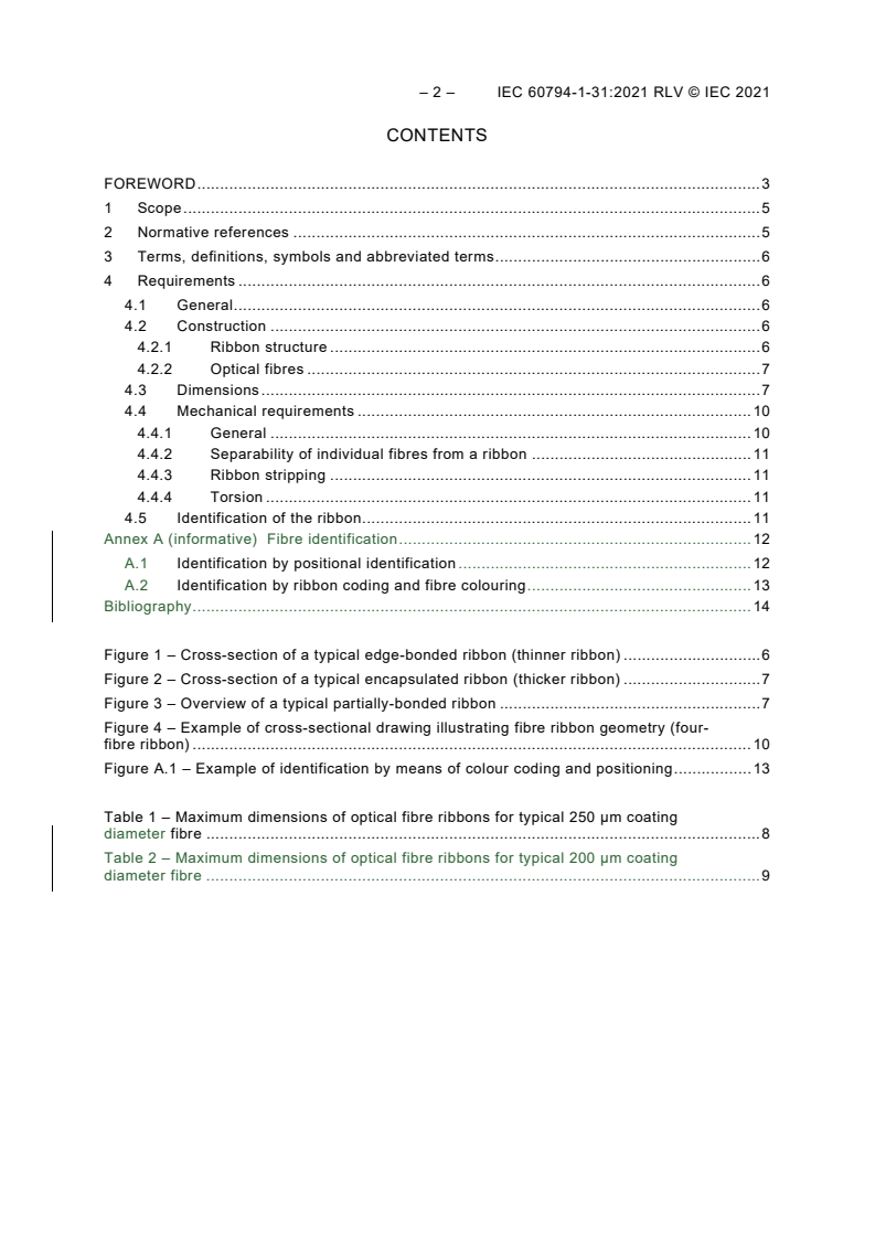 Keywords: IEC 60794-1-31:2021, optical fibre ribbons, ribbon geometry, edge-bonded, encapsulated, partially-bonded, 250 µm, 200 µm, mass splicing, telecommunications standards.