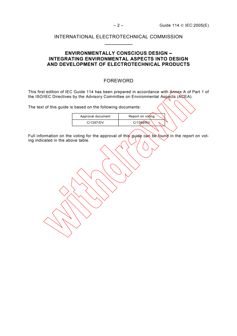IEC GUIDE 114:2005 - Environmentally conscious design - Integrating environmental aspects into design and development of electrotechnical products Released:5/27/2005 Isbn:2831899818