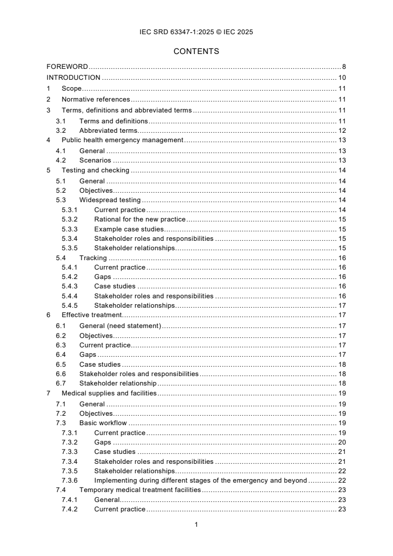 IEC SRD 63347-1:2025 This part aims to explain how the work of ‘Management of Public Health Emergencies in Smart Cities’ use case collection and analyses address “Urban Immune System”, provide a brief overview of ‘Public Health Emergencies in Smart Cities’, and identify the key application areas and stakeholders of ‘Public Health Emergencies in Smart Cities’ It will also identify standards requirements relating to overall guidance documents and standards relating to overarching issues.