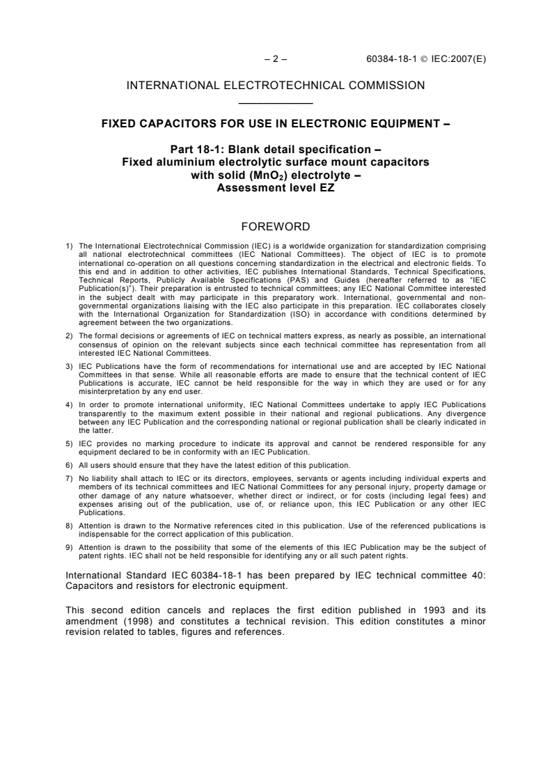 Keywords: IEC 60384-18-1, fixed aluminium electrolytic surface mount capacitors, MnO2 electrolyte, assessment level EZ, blank detail specification, capacitor specification, inspection, solderability, leakage current.