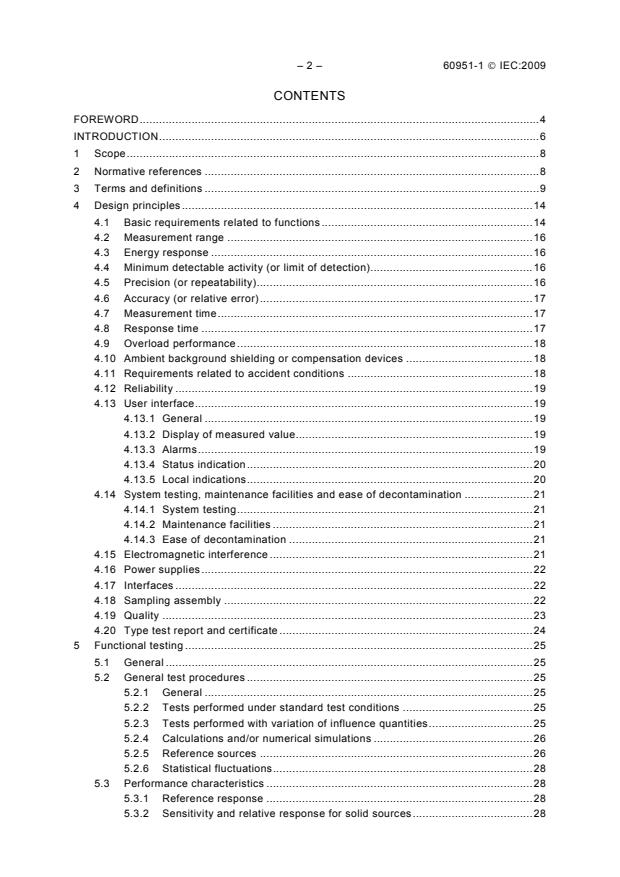 IEC 60951-1:2009 is a standard published by the International Electrotechnical Commission (IEC). Its full title is "Nuclear power plants - Instrumentation important to safety - Radiation monitoring for accident and post-accident conditions - Part 1: General requirements". This standard covers: IEC 60951-1:2009 provides general guidance on the design principles and performance criteria for equipment to measure radiation and fluid (gaseous effluents or liquids) radioactivity levels at nuclear power plants during and after an accident. It specifies the general characteristics, general test procedures, radiation, electrical, safety and environmental characteristics and the identification and certification of the equipment. The main technical changes with regard to the previous edition are as follows: - clarify the definitions; - up-date the references to new standards published since the first edition; - update the units of radiation.