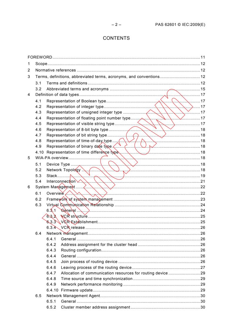 IEC PAS 62601:2009 is a technical specification published by the International Electrotechnical Commission (IEC). Its full title is "Industrial communication networks - Fieldbus specifications - WIA-PA communication network and communication profile". This standard covers: IEC/PAS 62601:2009(E) specifies WIA-PA system architecture and communication protocol for process automation based on IEEE 802.15.4. WIA-PA network is used for industrial monitoring, measurement and control applications.