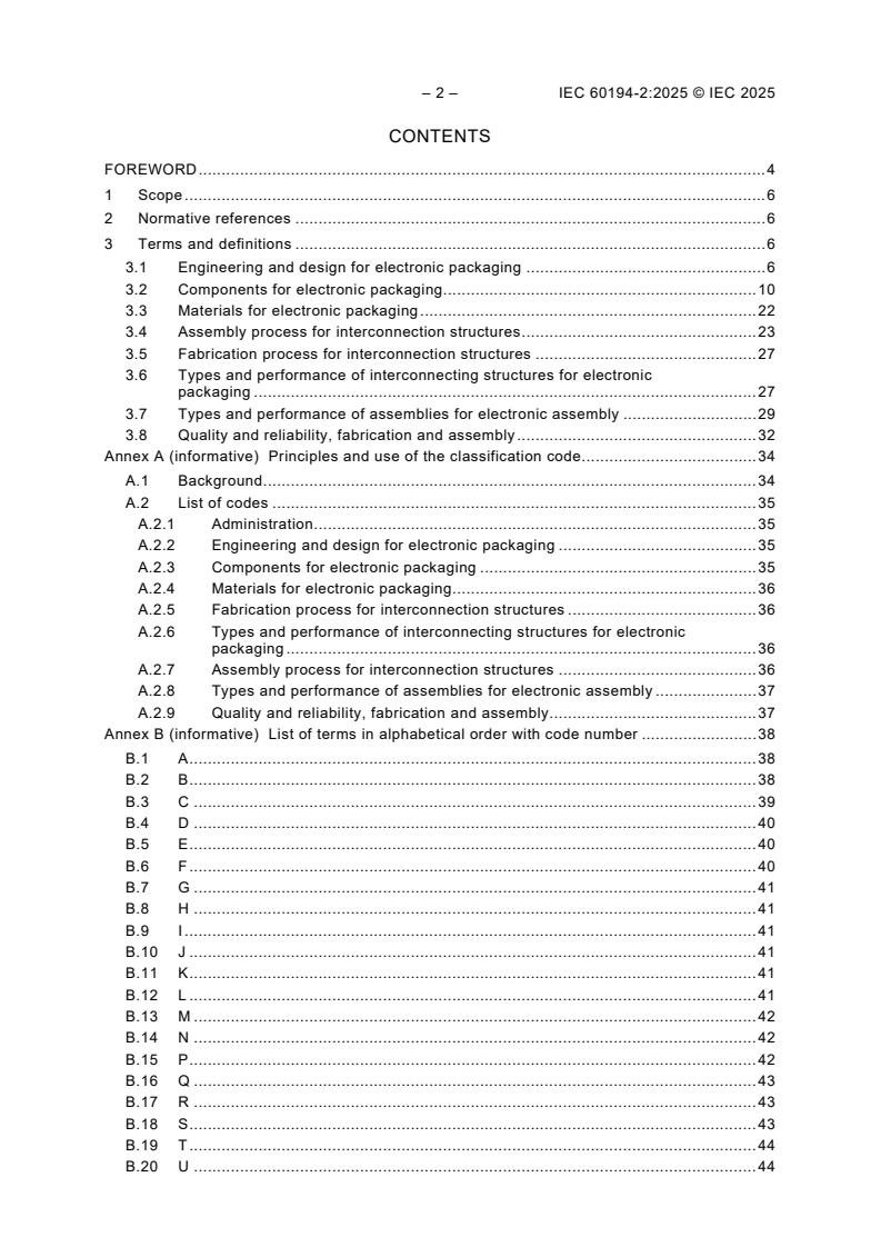 Keywords: IEC 60194-2:2025, electronic assembly vocabulary, circuit boards terminology, DCC classification, printed electronics terminology, IEC standards, electronics packaging vocabulary.