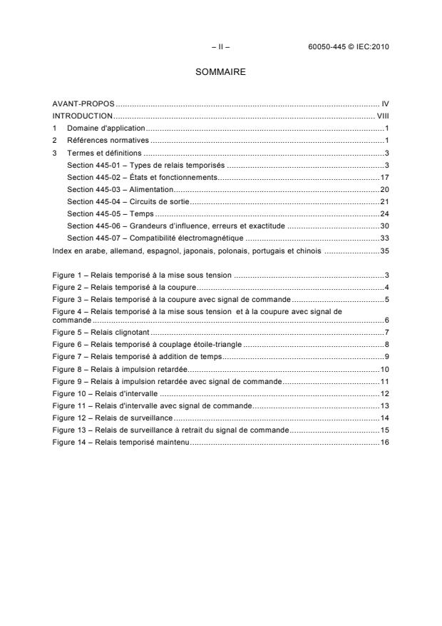 La CEI 60050-445:2010 définit les termes rélatifs aux relais de tout ou rien à temps spécifié. Cette deuxième édition annule et remplace la première édition parue en 2002. Cette édition constitue une révision technique. Cette nouvelle édition comporte:
