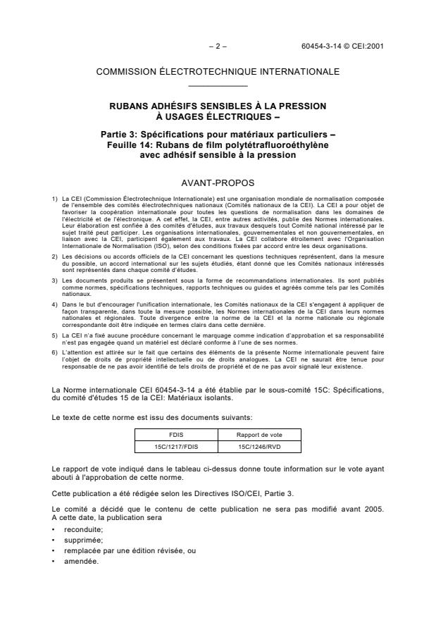 La Norme internationale CEI 60454-3-14 a été établie par le sous-comité 15C: Spécifications,