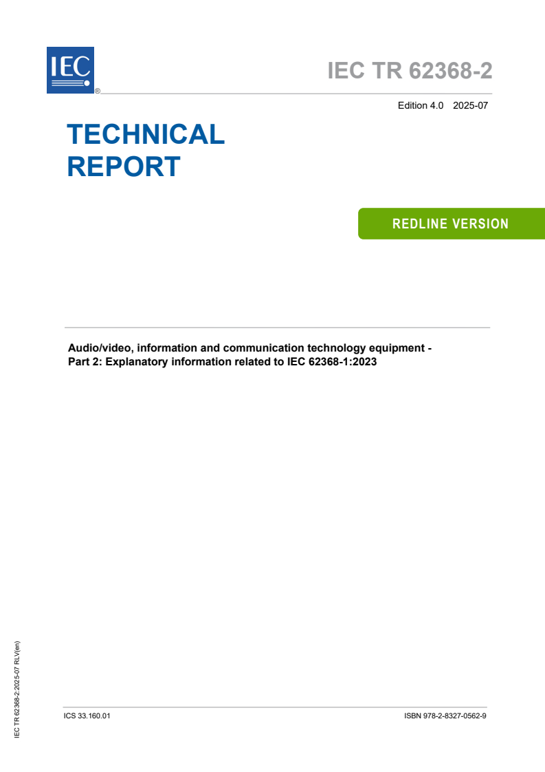 REDLINE IEC TR 62368-2:2025 RLV - Audio/video, information and communication technology equipment - Part 2: Explanatory information related to IEC 62368-1:2023 Released:7/3/2025 Isbn:9782832705629